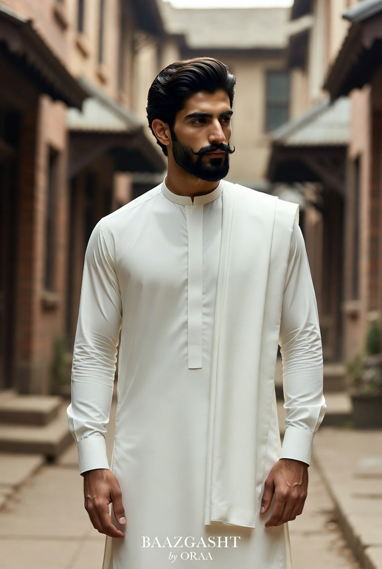 Introducing BAAZGASHT, a distinguished summer fabric by ORAA, created as a return to purity, balance, and effortless elegance. Crafted from a premium micro high-thread blended construction, BAAZGASHT reflects a sense of calm sophistication—designed for men who value subtle distinction over excess.